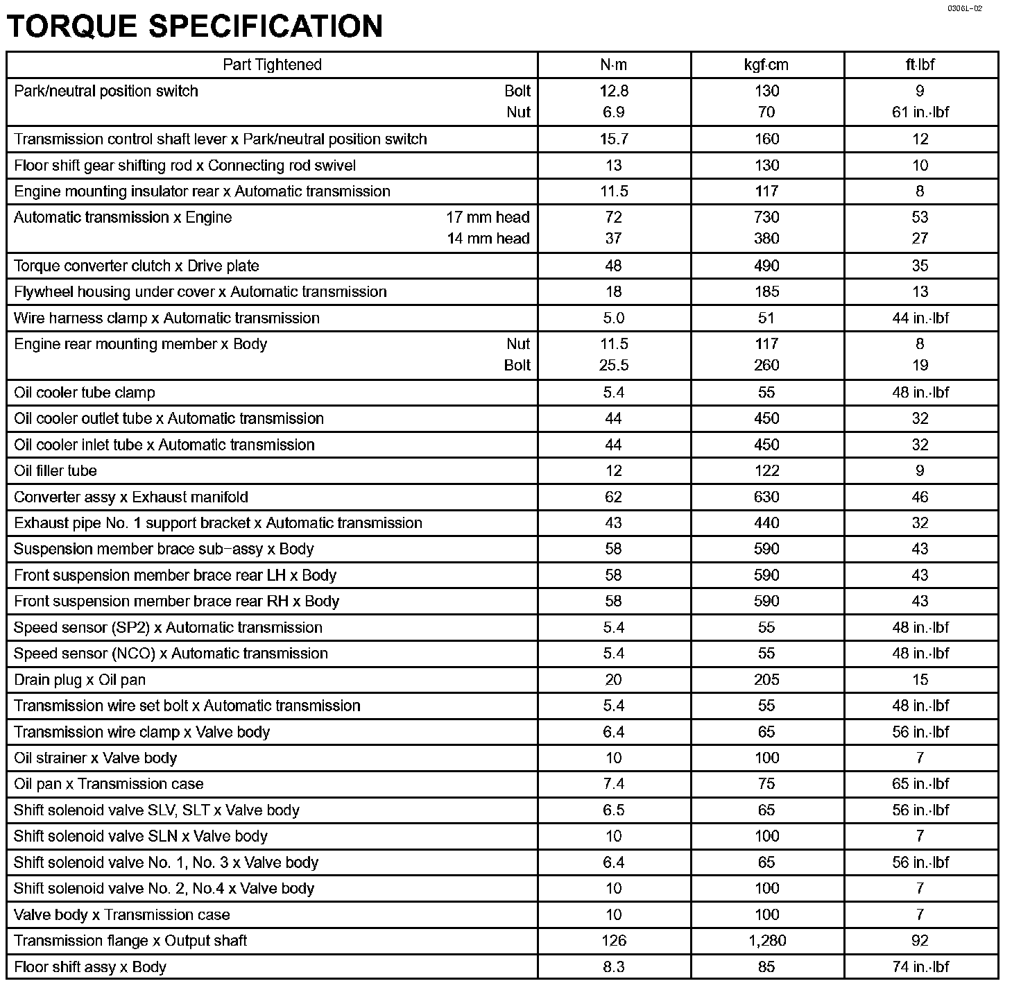 Automatic Transmission / Transaxle-Torque Specification: