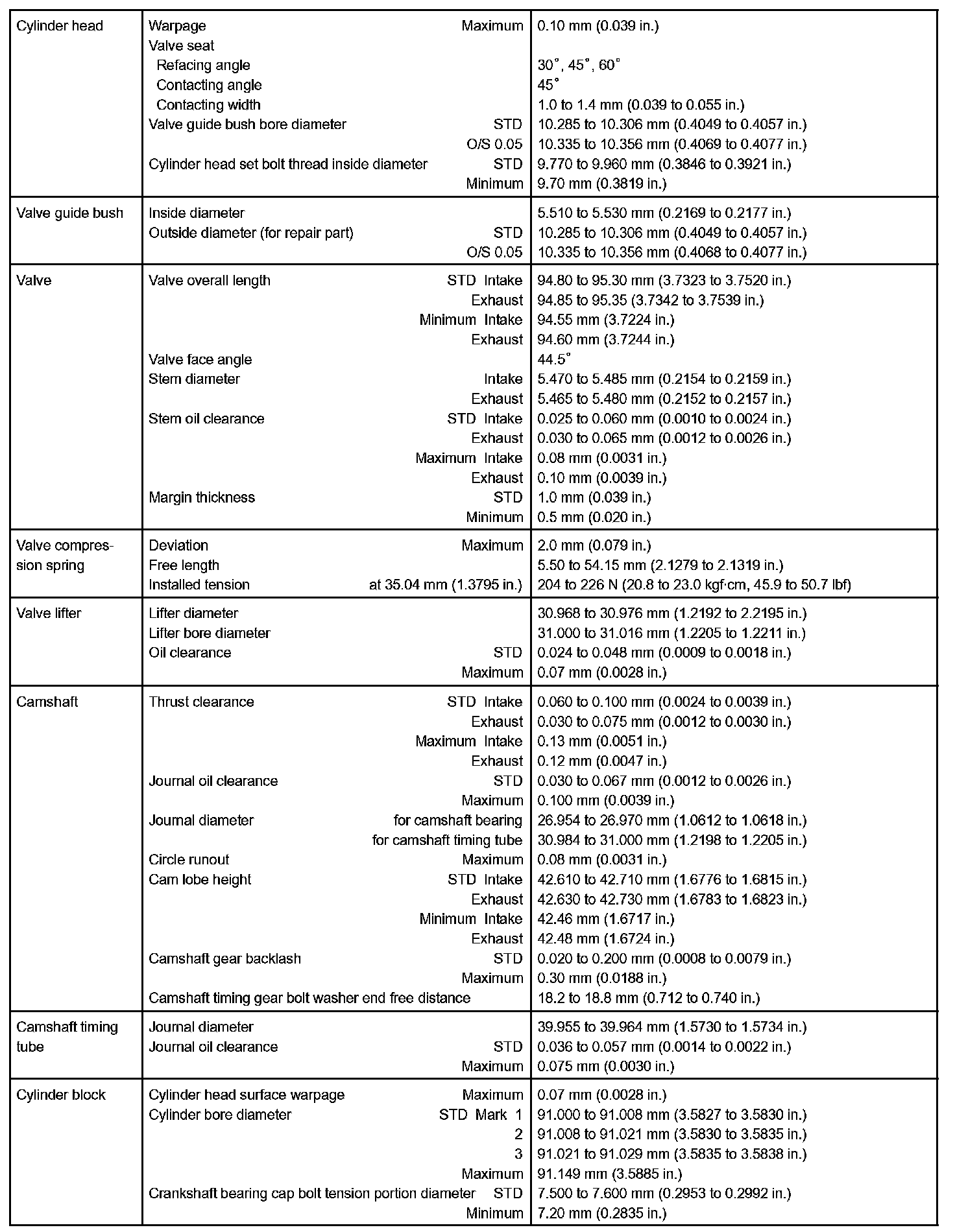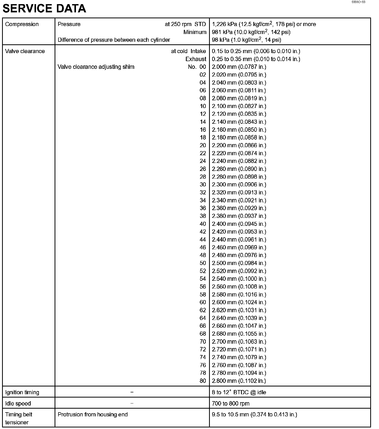 Engine Mechanical-Service Data (Part 1):
