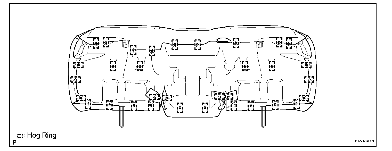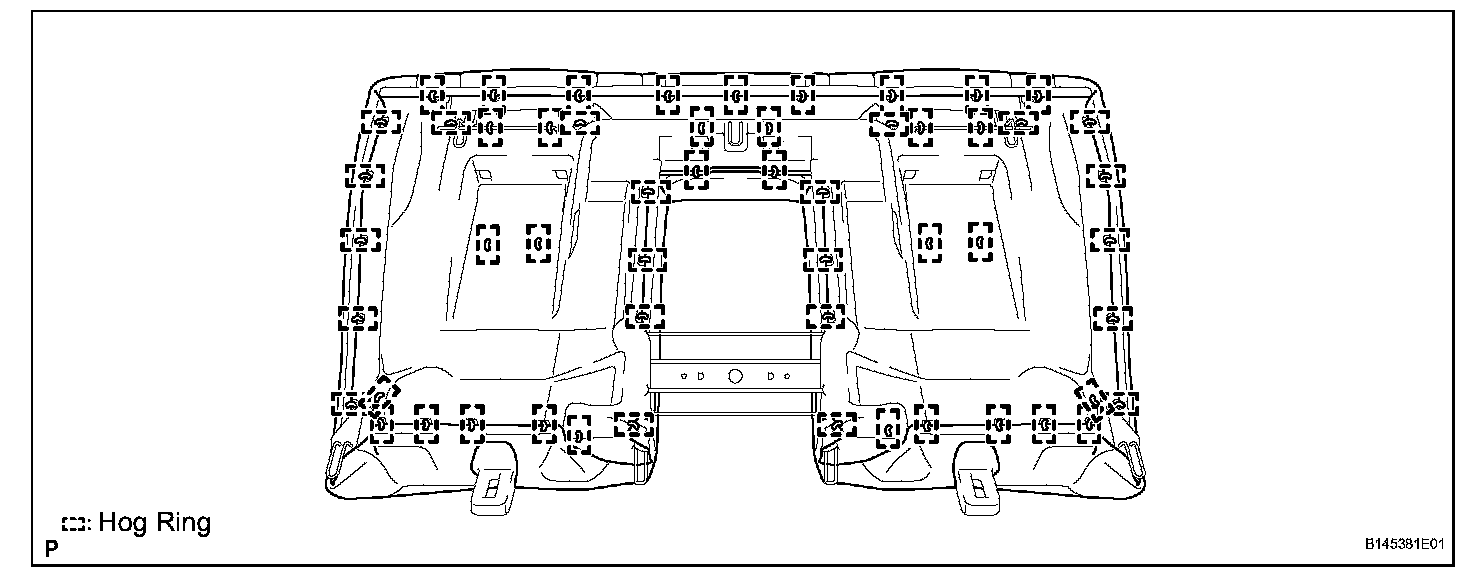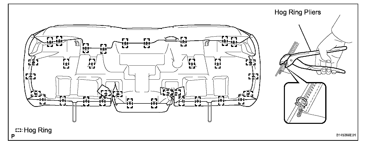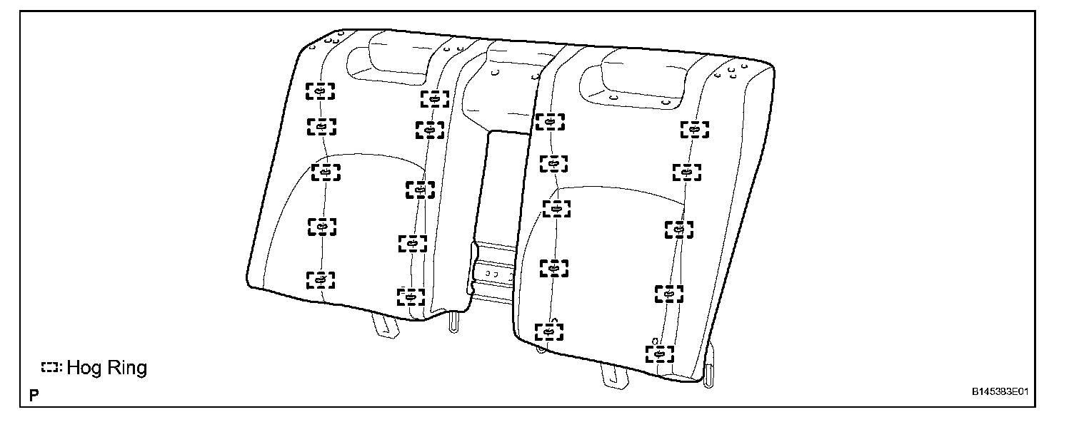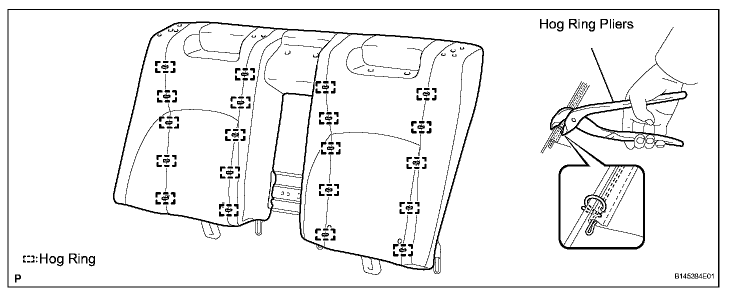 b. Using hog ring pliers, install the rear bench type seatback cover to the seatback frame (with pad) with 55 new hog rings.