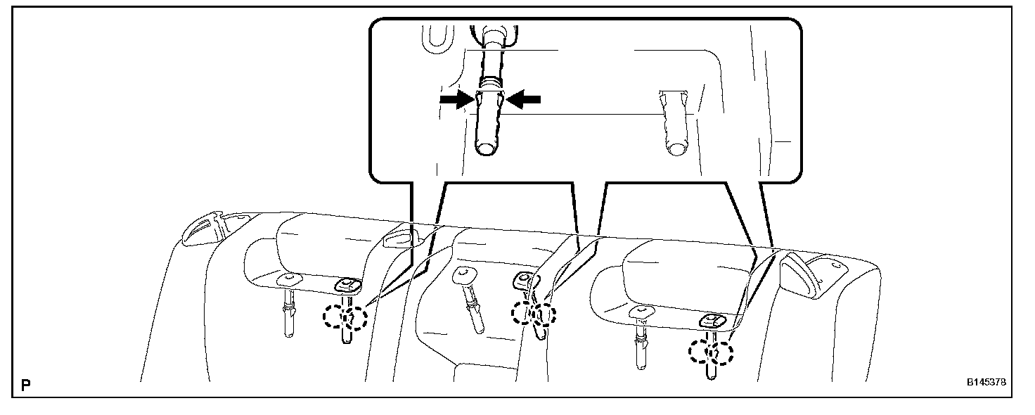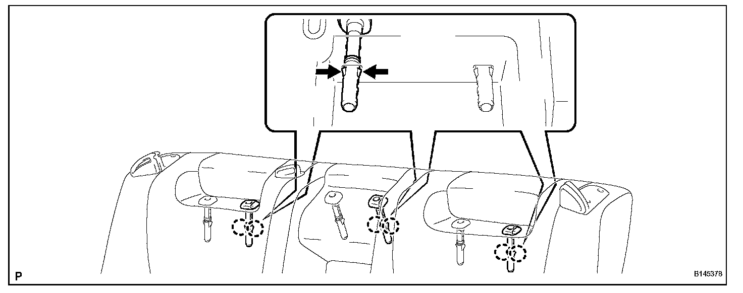 a. Engage the 6 claws and install the 3 rear seat headrest supports.
