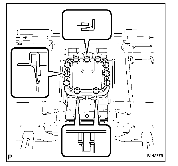 a. Engage the 11 claws and install the inner center seat armrest plate.