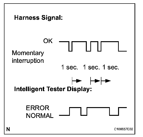 - The ERROR display on the intelligent tester remains on for 1 second after the harness signal changes from momentary interruption (open circuit) to normal condition.