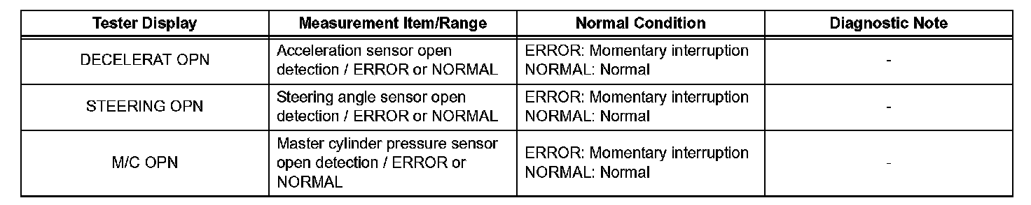 CHECK FOR INTERMITTENT PROBLEMSHINT: A momentary interruption (open circuit) in the connectors and/or wire harness between the sensors and ECUs can be detected using the ECU Data List function of the intelligent tester.