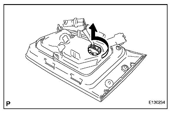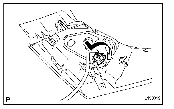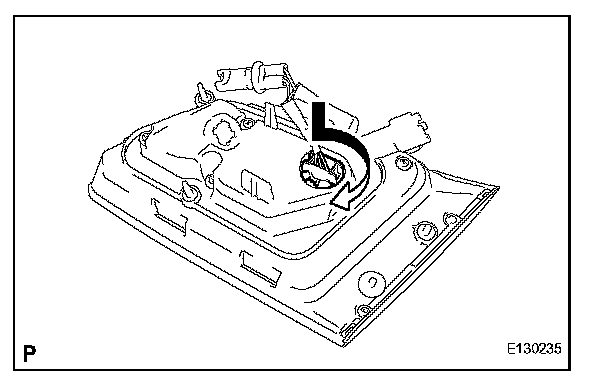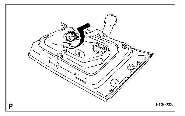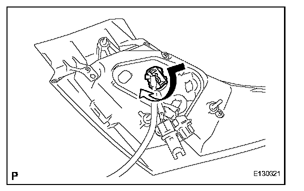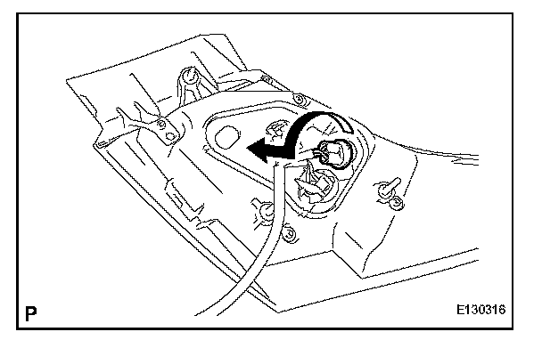 a. Turn the tail and stop light bulb and the rear combination light socket and wire sub-assembly in the direction indicated by the arrow and remove them as a unit.