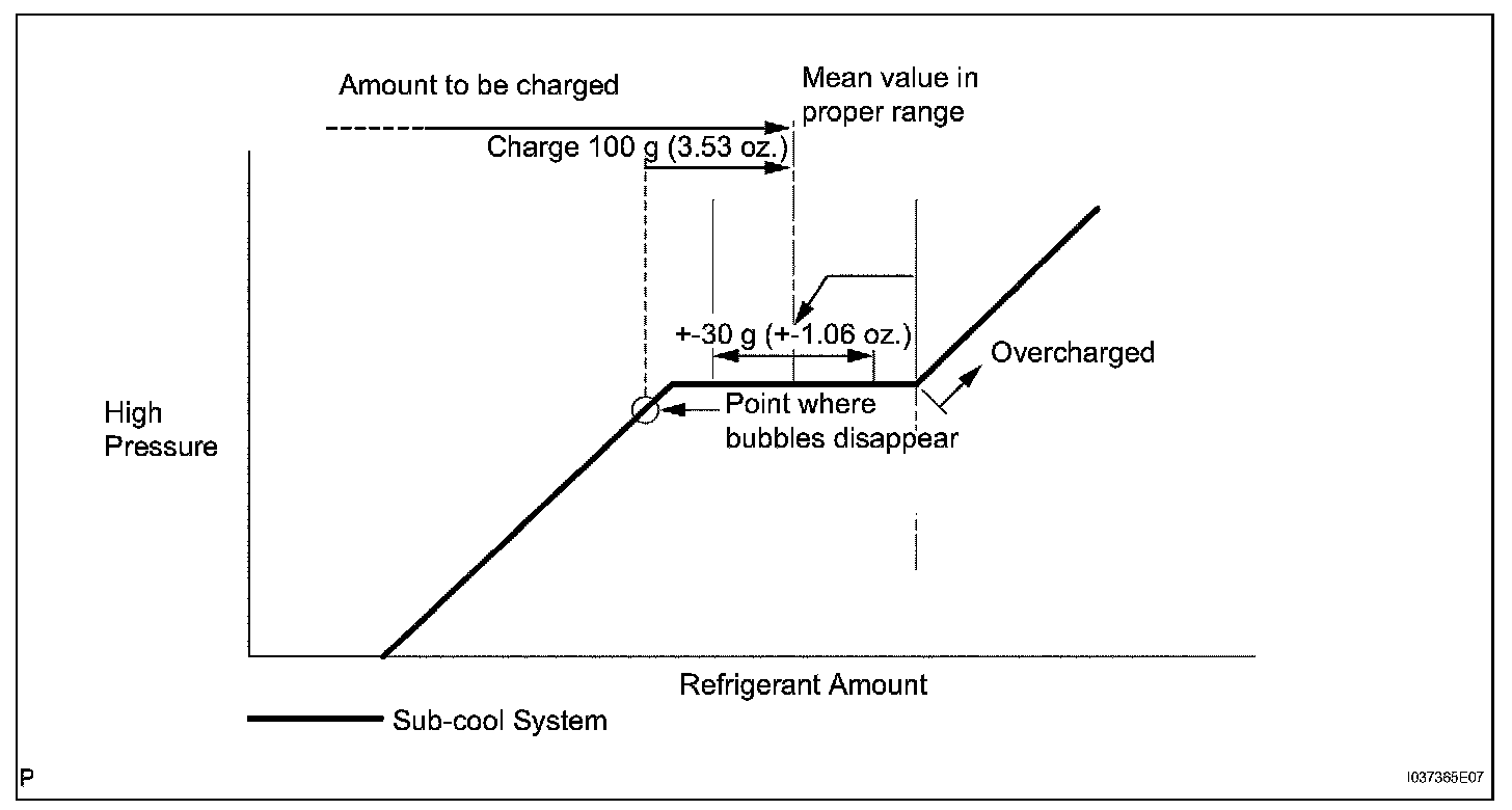 - Approximately 100 g (3.53 oz.) of refrigerant may need to be charged after bubbles disappear.
