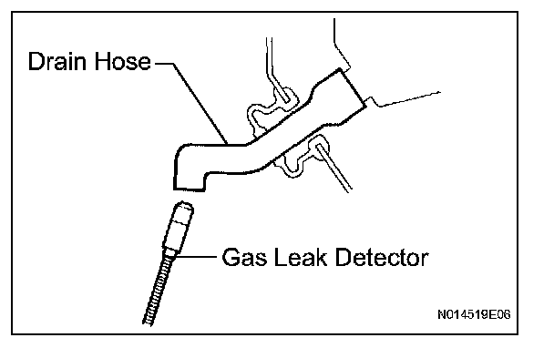 - When bringing the gas leak detector close to the drain hose, make sure that the gas leak detector does not react to volatile gases.