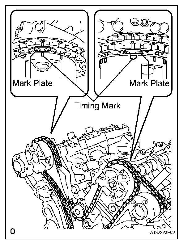 (a) Align the mark plate and timing marks as shown in the illustration and install the chain.