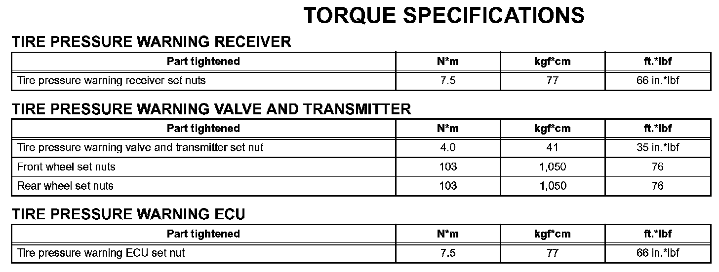 Tire And Wheel - Torque Specifications: