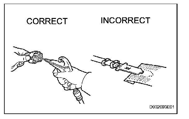 2. Never twist, pull or slacken the wire harness more than necessary.