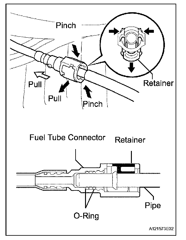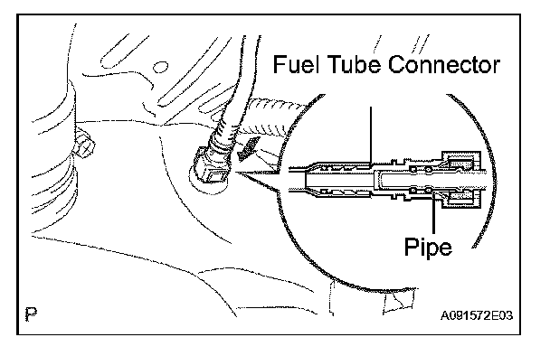 - After connecting the connector, check if the fuel tube connector and the pipe are securely connected by pulling on them.