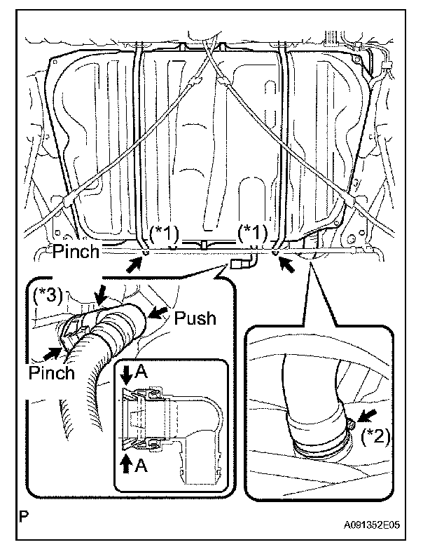 e. Connect the fuel tank inlet pipe with the fuel filter pipe clamp. (*2)
