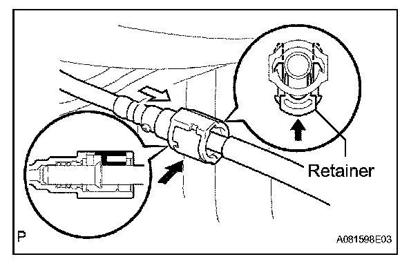 1. Push the fuel tube connector into the pipe and push up the retainer so that the claws engage.