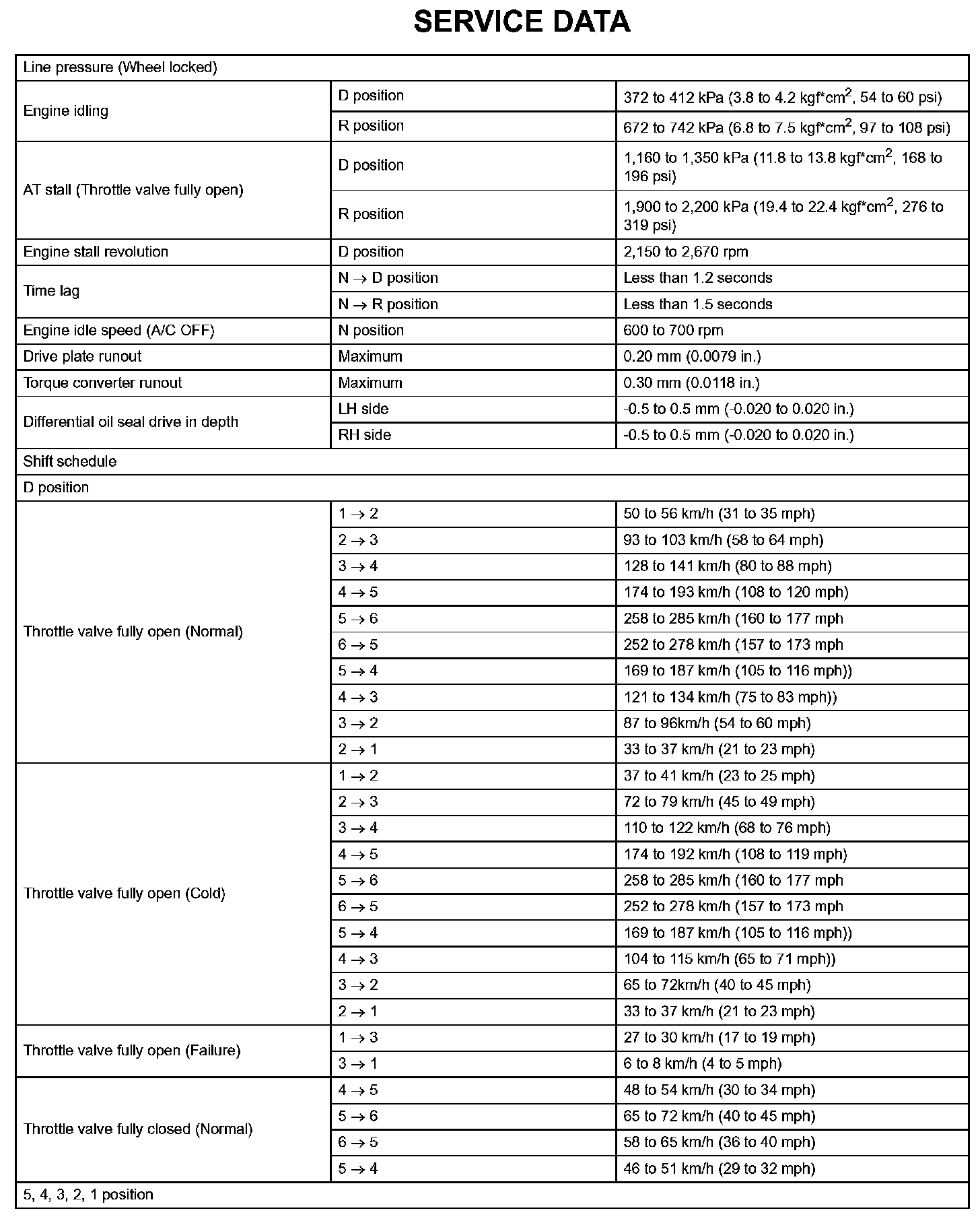 Automatic Transaxle - Service Data (Part 5):
