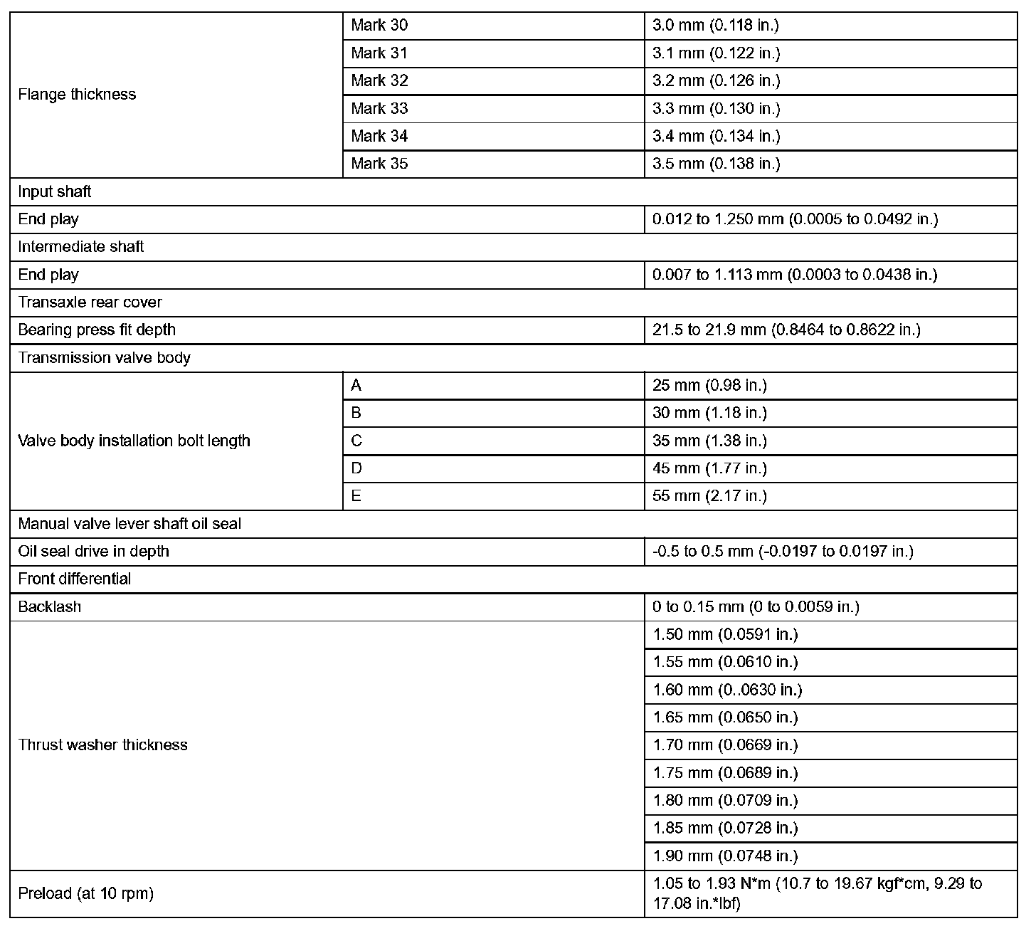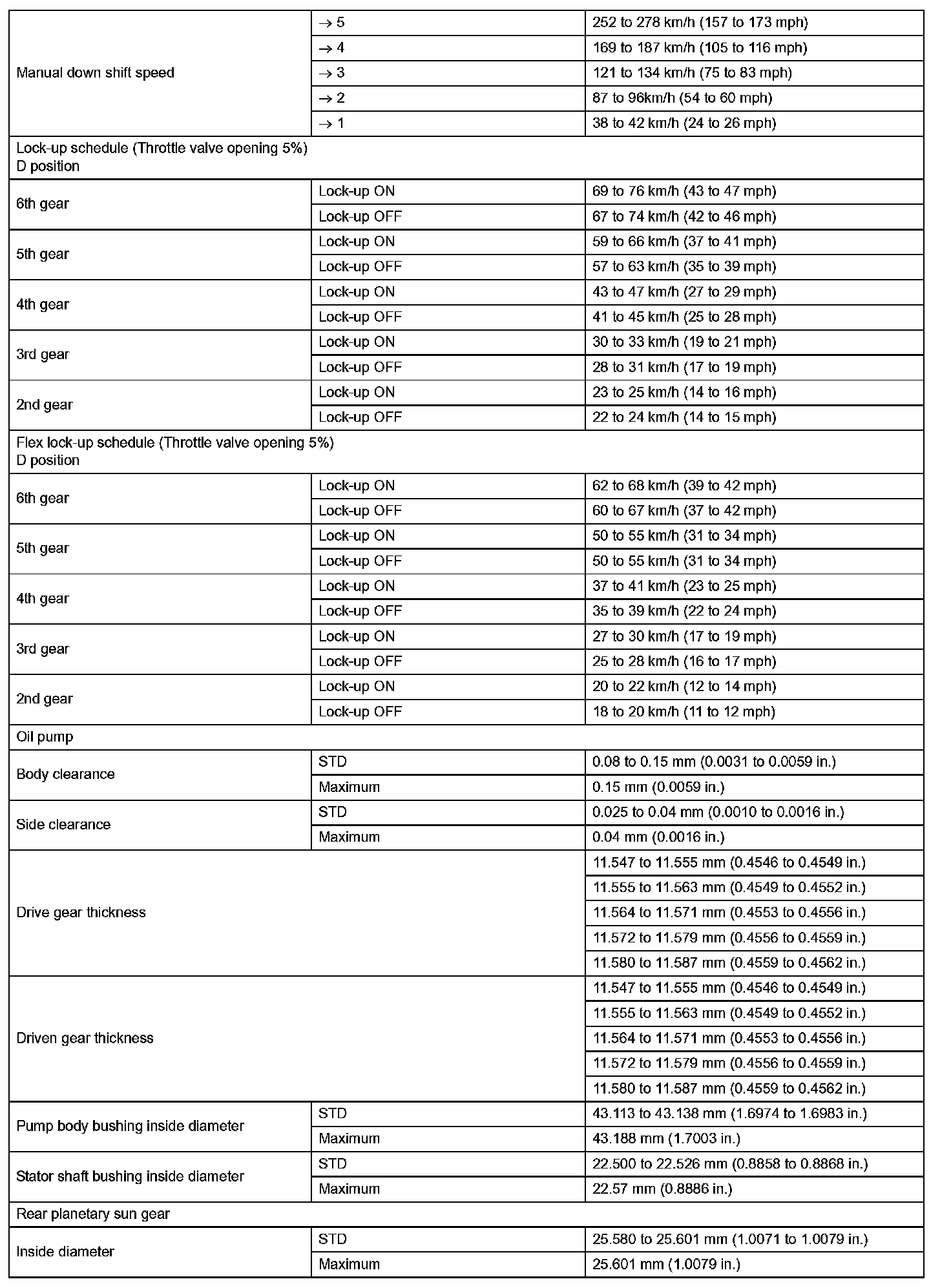 Automatic Transaxle - Service Data (Part 2):