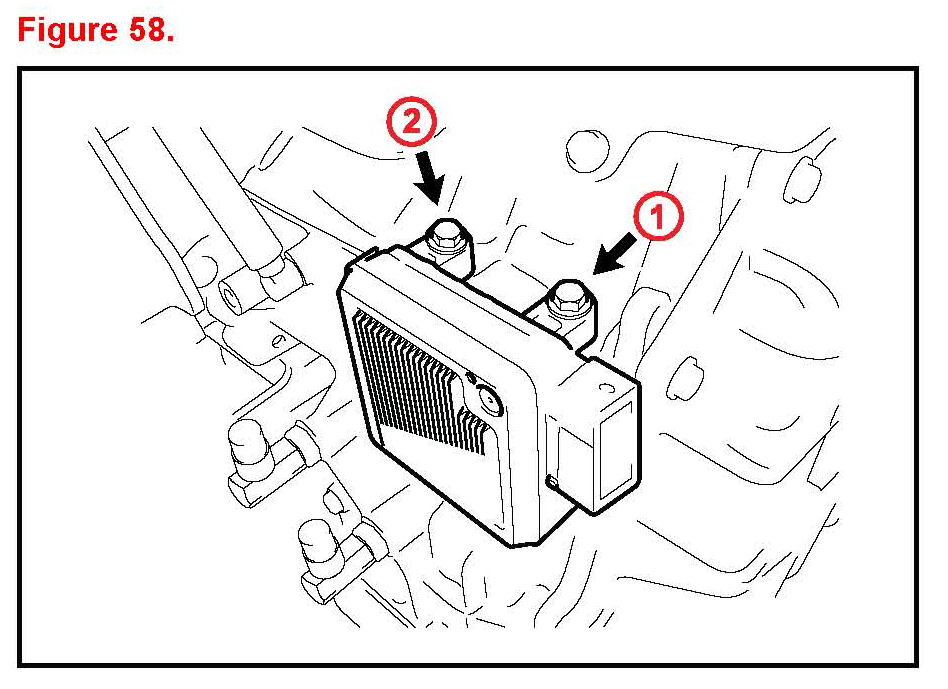 6. Install the Transmission Control Module (TCM) to the transaxle and tighten the 2 bolts in the order shown in the illustration.