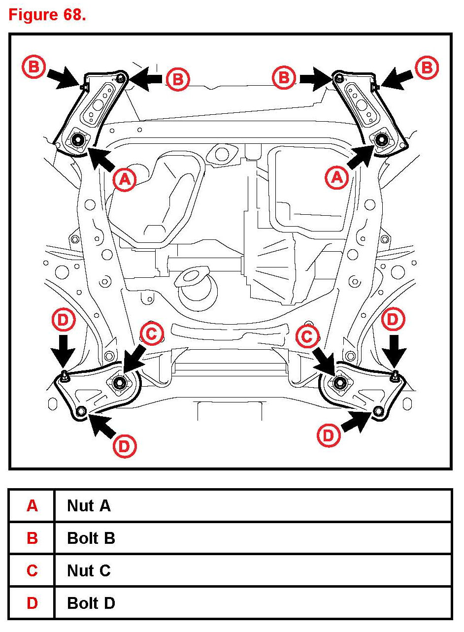 B. Install the front suspension member brace rear RH and LH with the 4 bolts and 2 nuts.