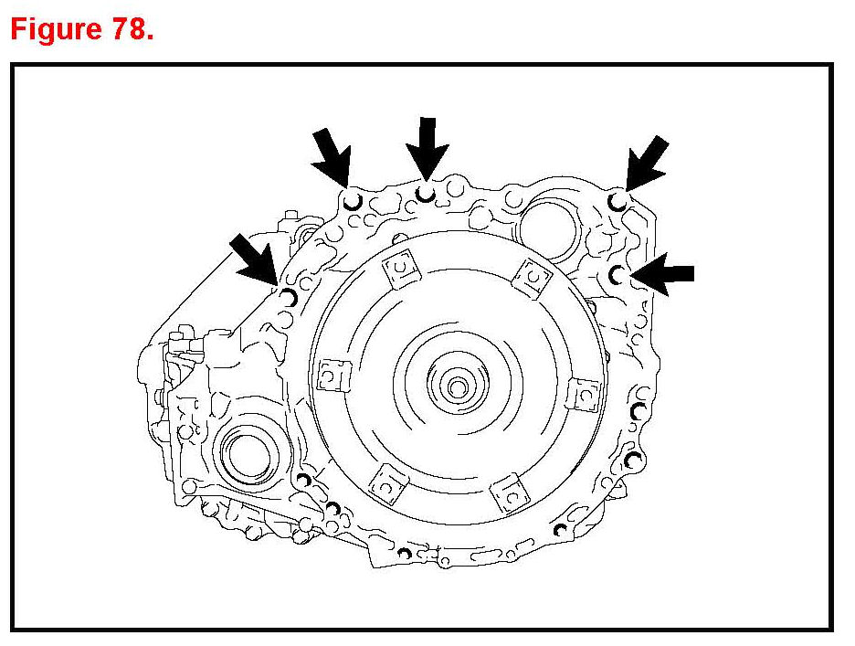 B. Install the 6 torque converter clutch mounting bolts.