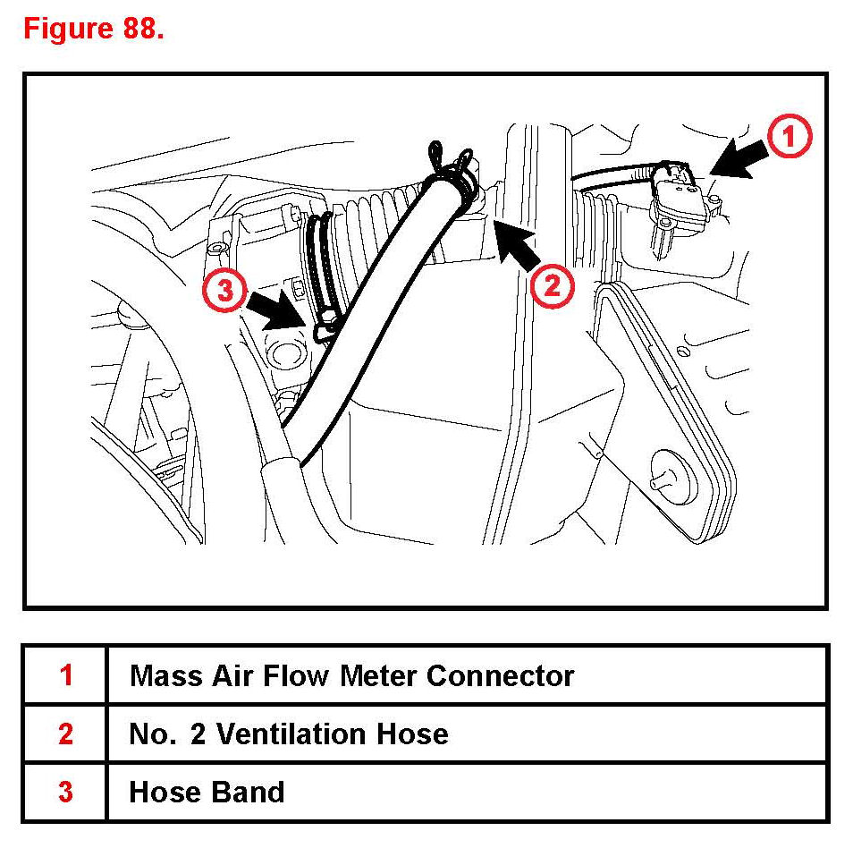 D. Connect the mass air flow meter connector No. 2 ventilation hose and hose band.