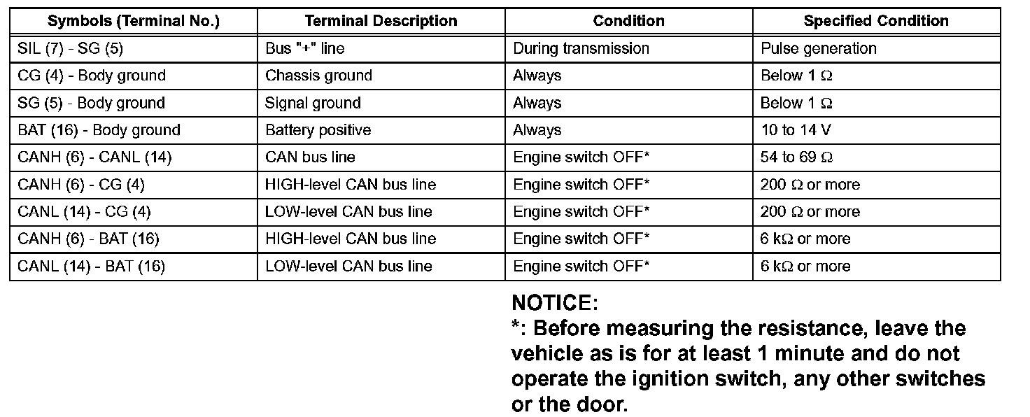 If the result is not as specified, the DLC3 may have a malfunction. Repair or replace the harness and connector.