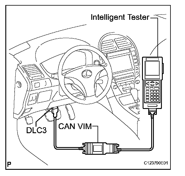 HINT: Connect the cable of the intelligent tester to the DLC3, turn the engine switch on (IG) and attempt to use the tester. If the display indicates that a communication error has occurred, there is a problem either with the vehicle or with the tester.