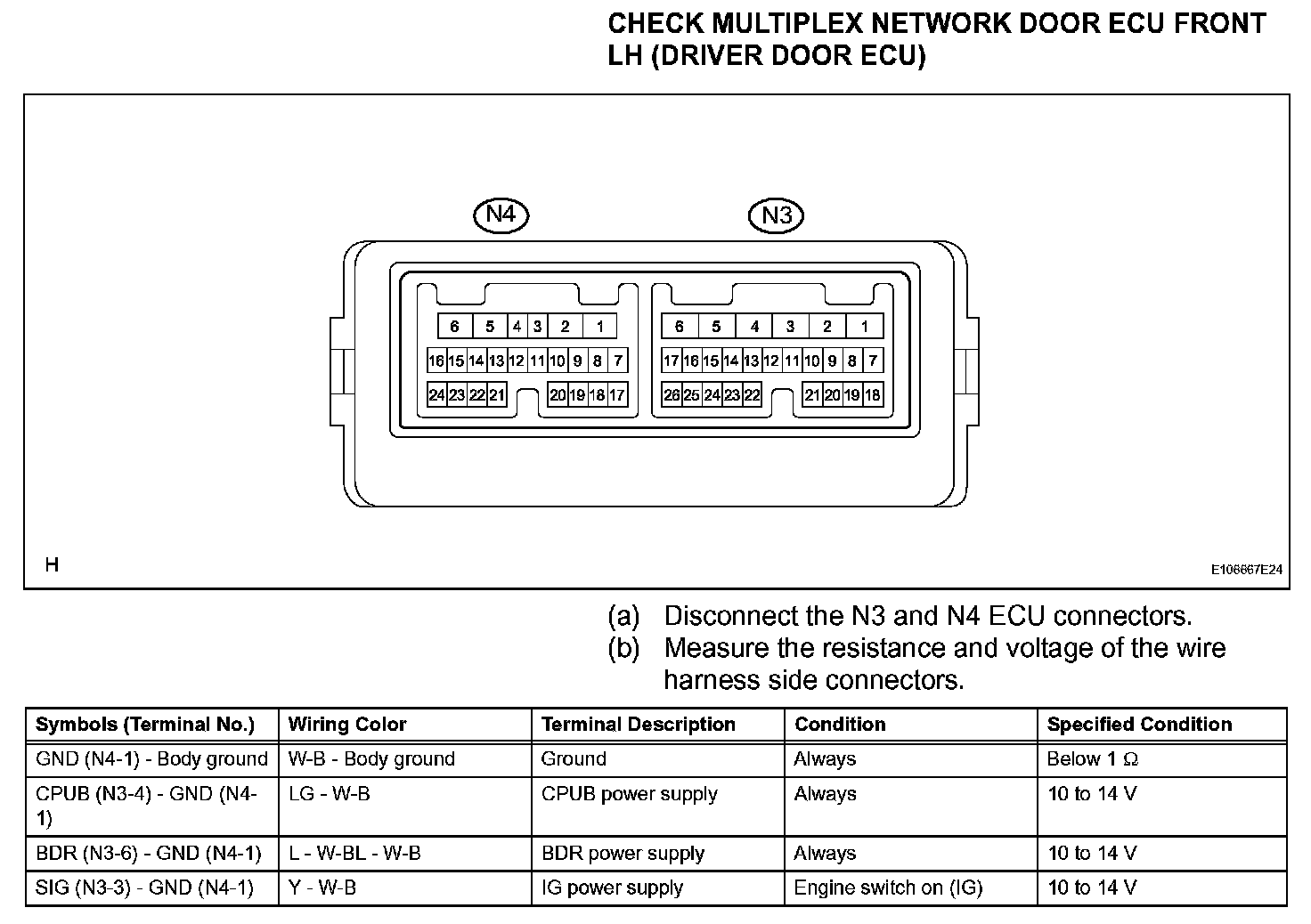 Terminals Of Control Module/Pinouts - Check Multiplex Network Door ECU Front LH(Driver Door ECU) (Part 1):