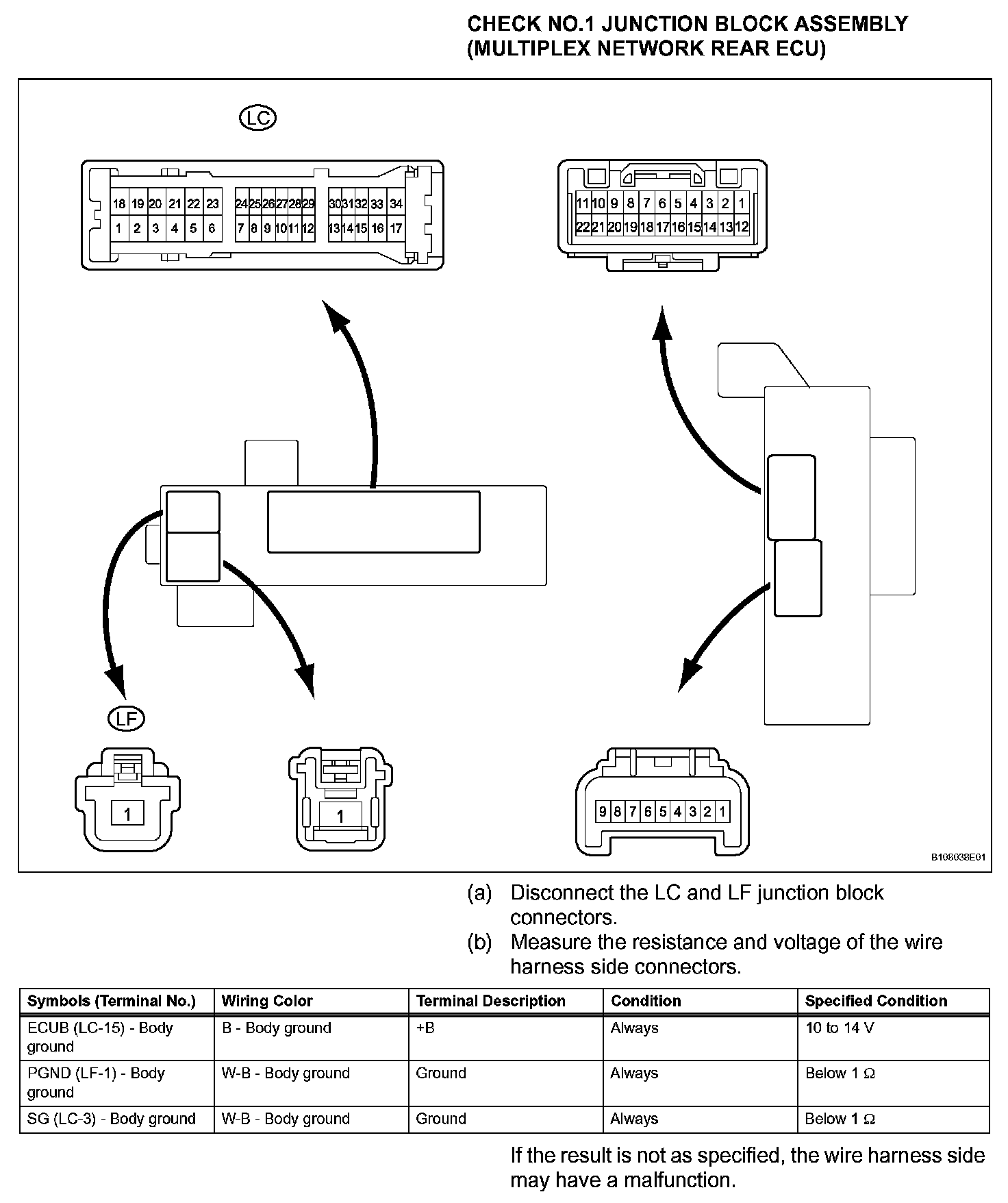 Terminals Of Control Module/Pinouts - Check No.1 Junction Block Assembly (Multiplex Network Rear ECU):