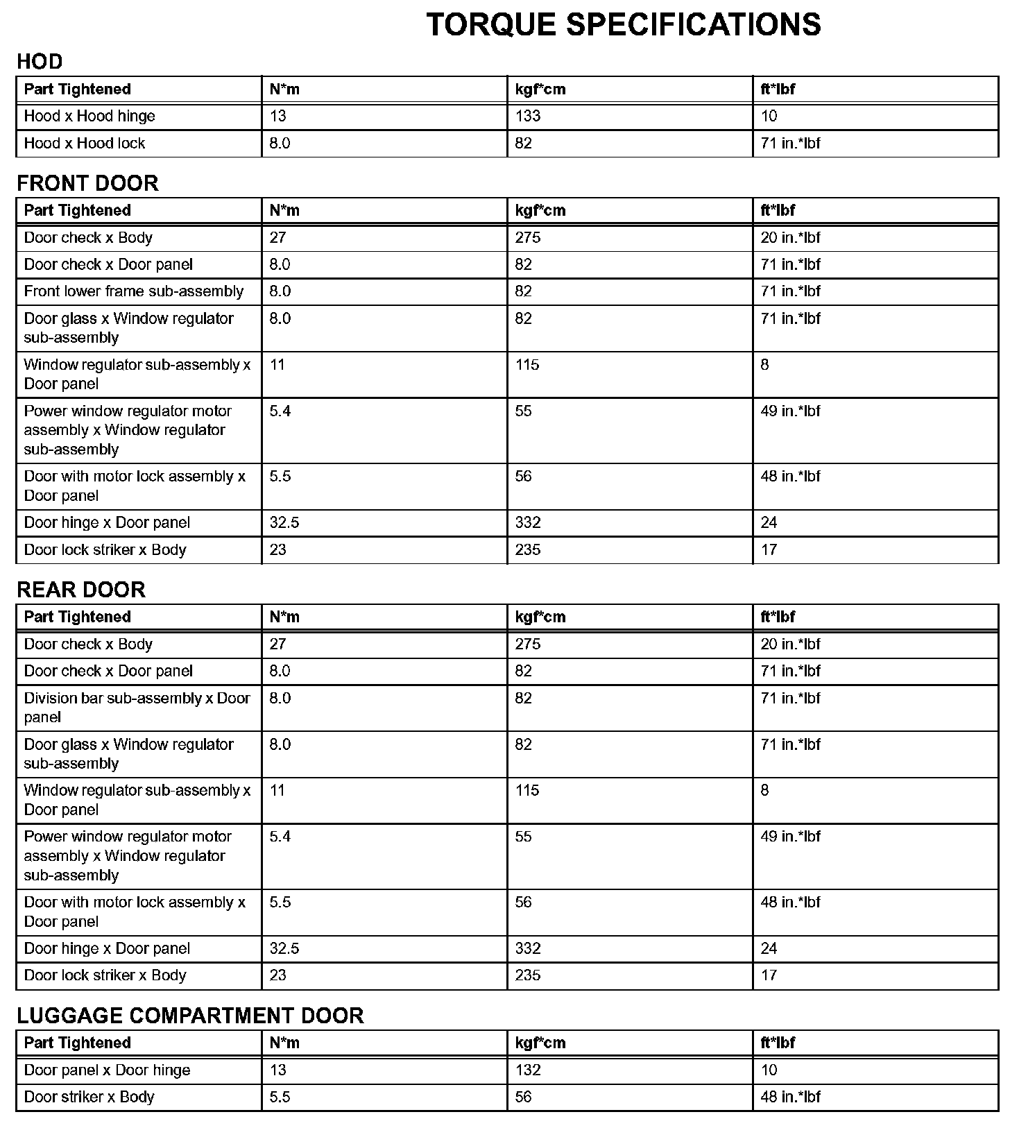 Engine Hood / Door - Torque Specifications: