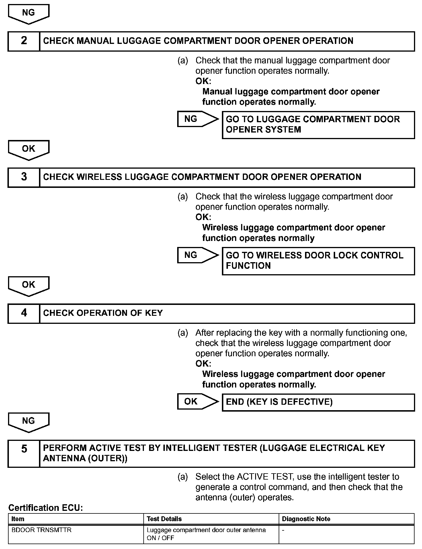 Luggage Compartment Door Entry Unlock Function does not Operate when Key is Outside Luggage CompartmentDESCRIPTION