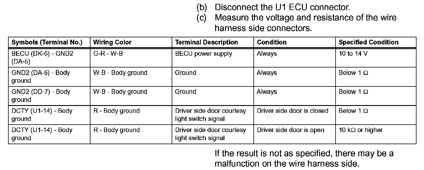 Terminals Of Control Module/Pinouts - Check Rear Multiplex Network Door ECU LH (Part 2):