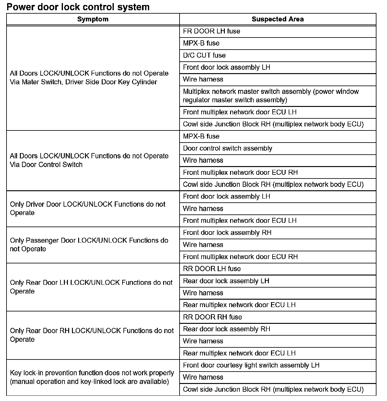 PROBLEM SYMPTOMS TABLEProblem Symptoms Table - Power Door Lock Control System:
