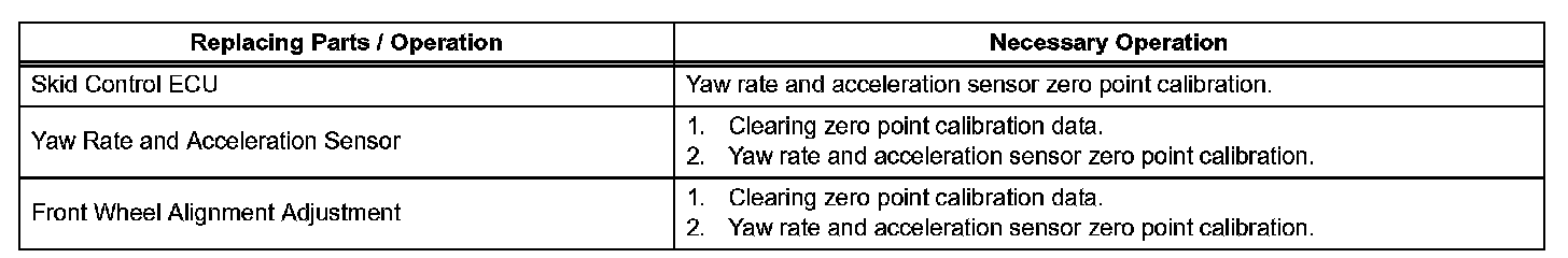 - After replacing the VSC relevant components or performing "Front wheel alignment adjustment", clear and read the sensor calibration data.