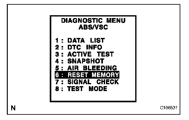 c. Operate the intelligent tester to erase the codes (select "RESET MEMORY").