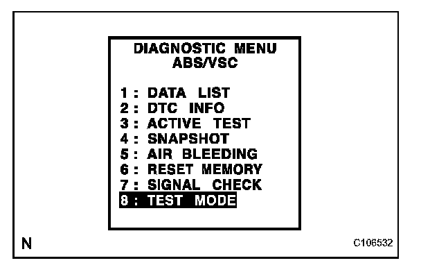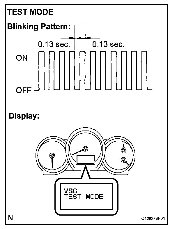 3. Check that the VSC warning light blinks and "VSC TEST MODE" is displayed on the multi-information display (test mode).