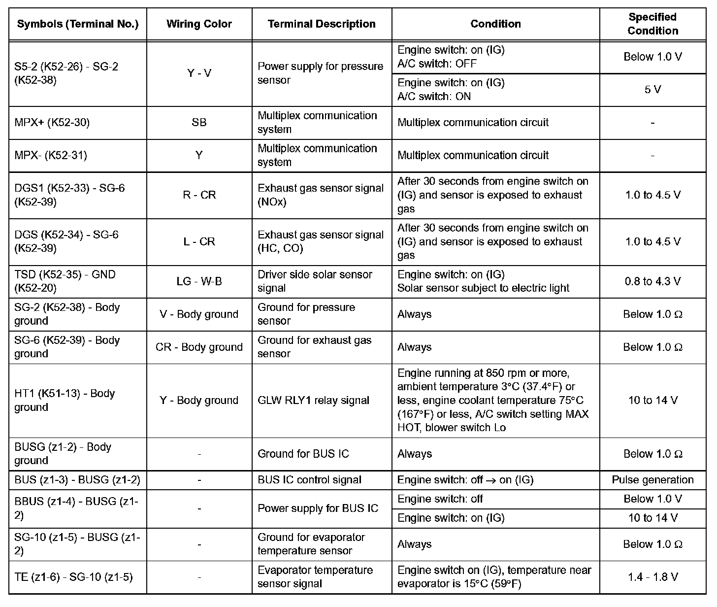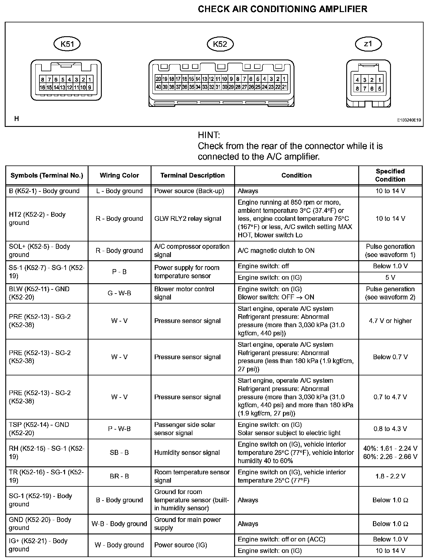 Terminals Of Control Module/Pinouts - Check Air Conditioning Amplifier (Part 2):