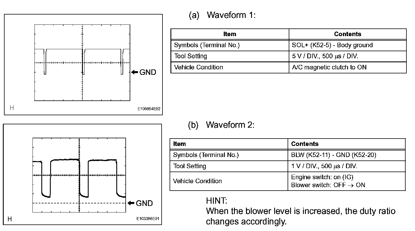 Check Air Conditioning Amplifier - Oscilloscope Waveforms: