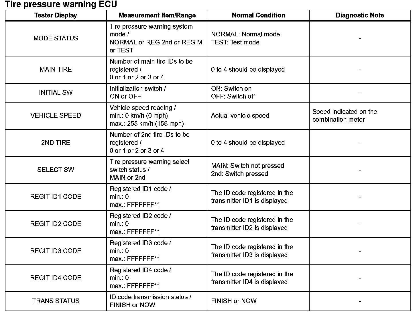 Tire pressure warning ECU (Part 2):