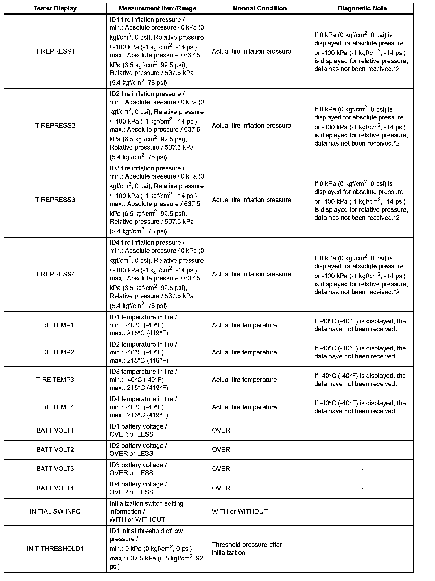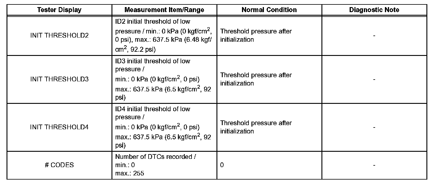 *2: It may take about 2 or 3 minutes until the values are displayed. If the values are not displayed after a few minutes, perform troubleshooting according to the inspection procedure for DTCs C2121/21 to C2124/24. C2121
