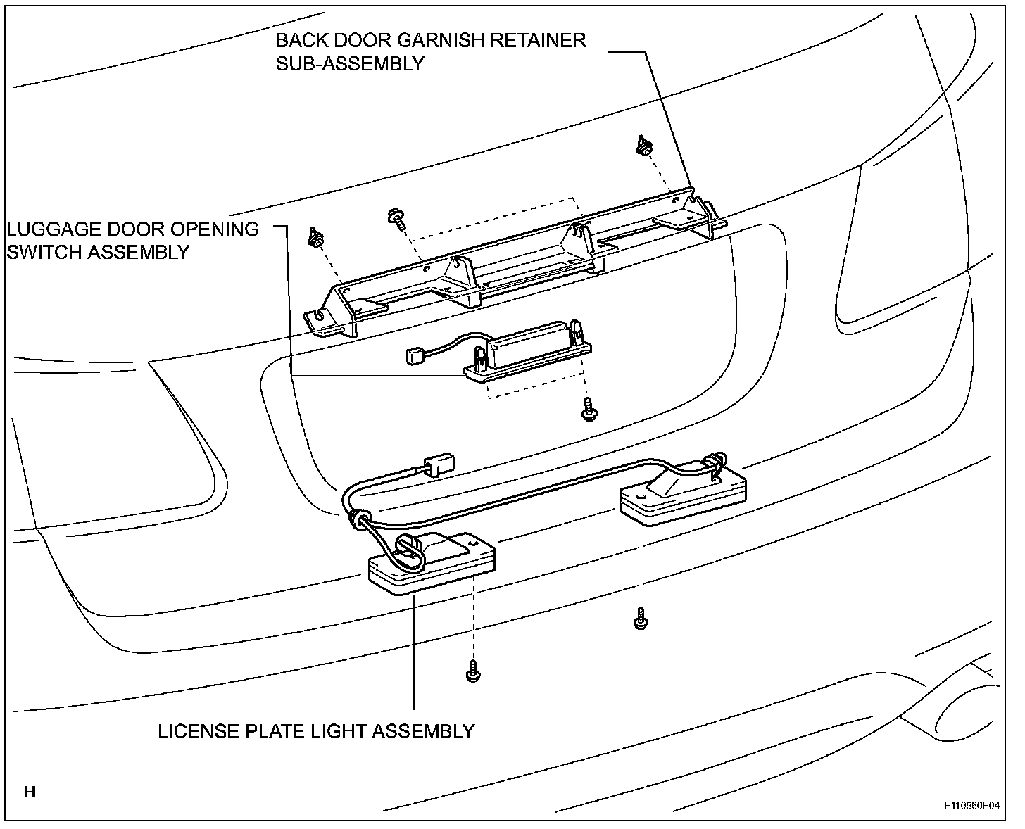 a. Install the license plate light and 2 screws to the luggage compartment door.