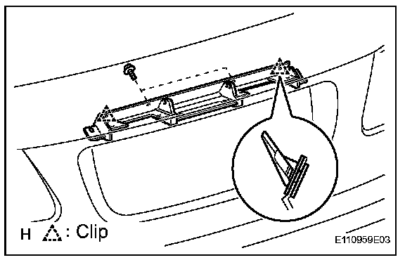 b. Remove the 2 clips and retainer from the luggage compartment door.