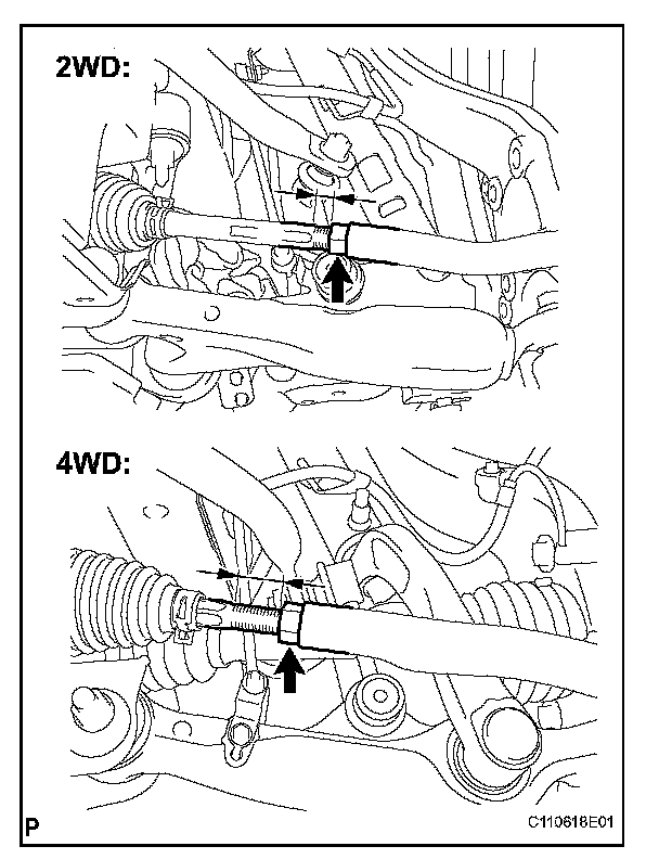 (1) Extend the shorter rack end if the measured toe-in deviates toward the inner-side.