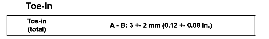 If the toe-in is not within the specified range, inspect the suspension parts and replace if necessary.