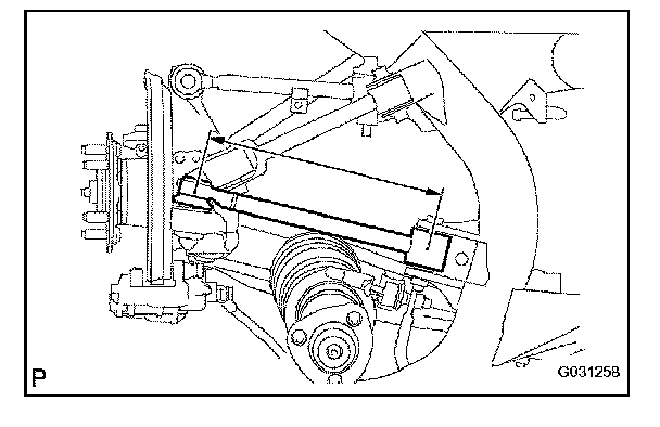 (1) Measure the distance between the centers of the installation bolts of the rear suspension arm assembly No.2 LH and RH.