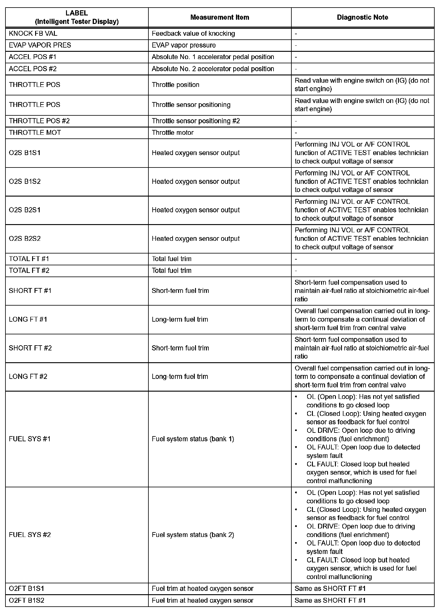 HINT: If it is impossible to replicate the problem even though a DTC is detected, confirm the freeze frame data. The ECM records engine conditions in the form of freeze frame data every 0.5 seconds. Using the intelligent tester, five separate sets of freeze frame data, including the data values at the time when the DTC was set, can be checked.