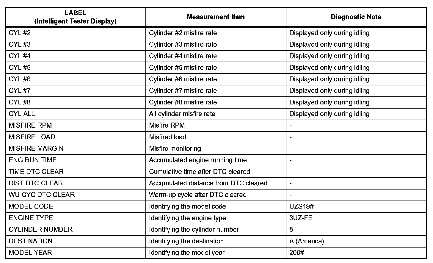 Freeze frame data records the engine conditions (fuel system, calculated load, engine coolant temperature, fuel trim, engine speed, vehicle speed, etc.) when a malfunction is detected. When troubleshooting, freeze frame data can help determine if the vehicle was running or stopped, if the engine was warmed up or not, if the air-fuel ratio was Lean or Rich, and other data from the time the malfunction occurred.