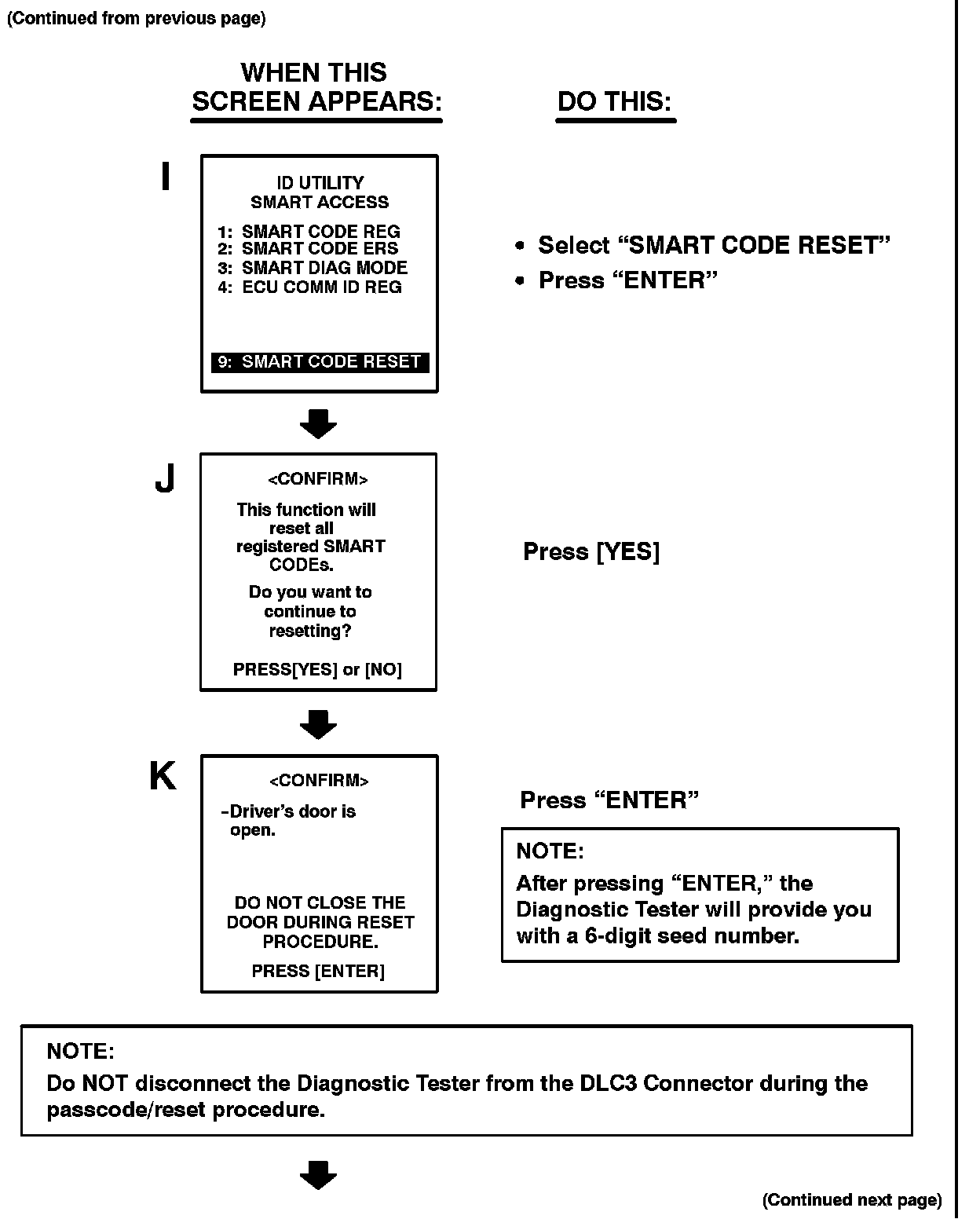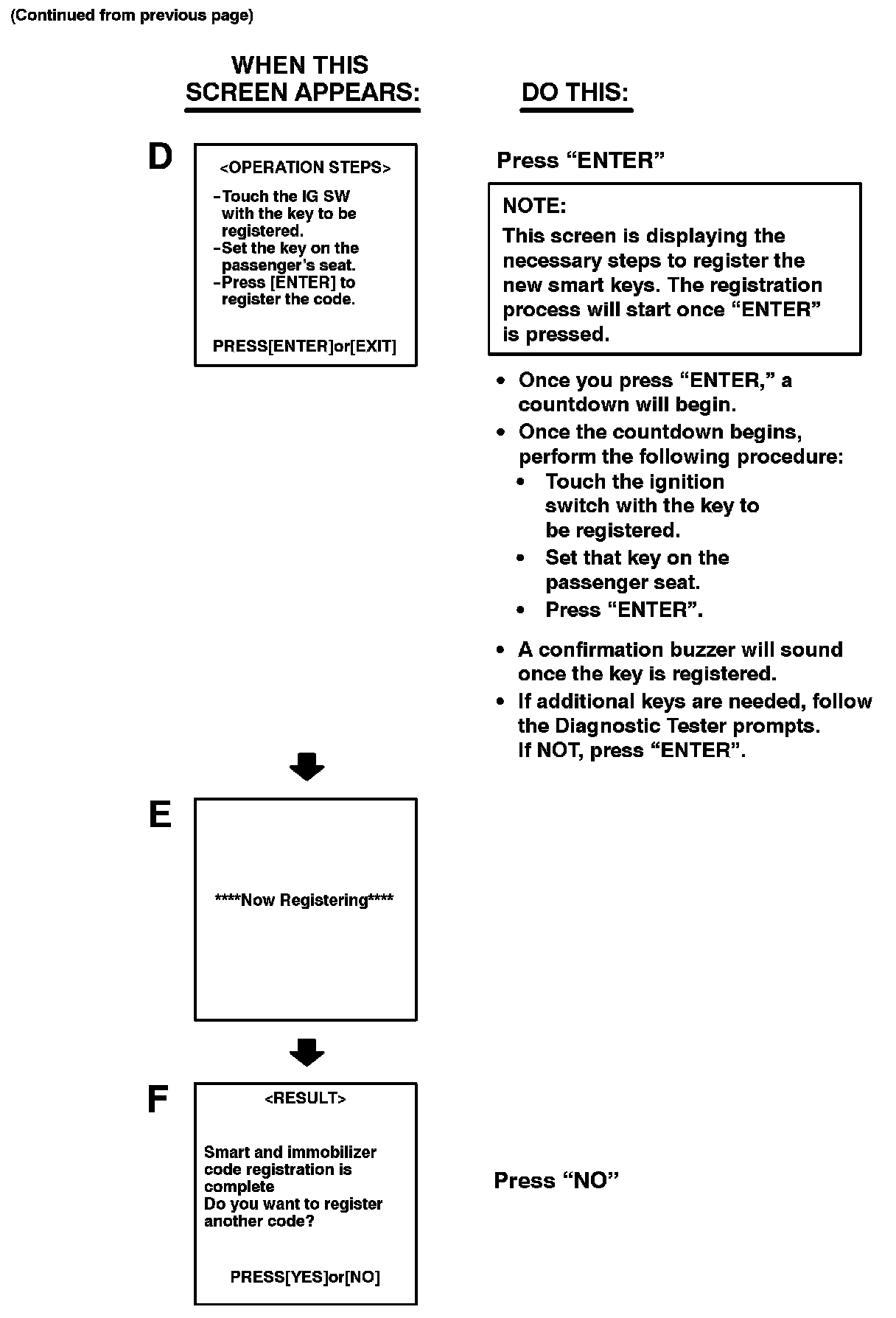 Follow the Diagnostic Tester screen flows. This procedure works best if you use the instructions under the "DO THIS" column and use the screen prints to know WHEN to perform the instructions only.