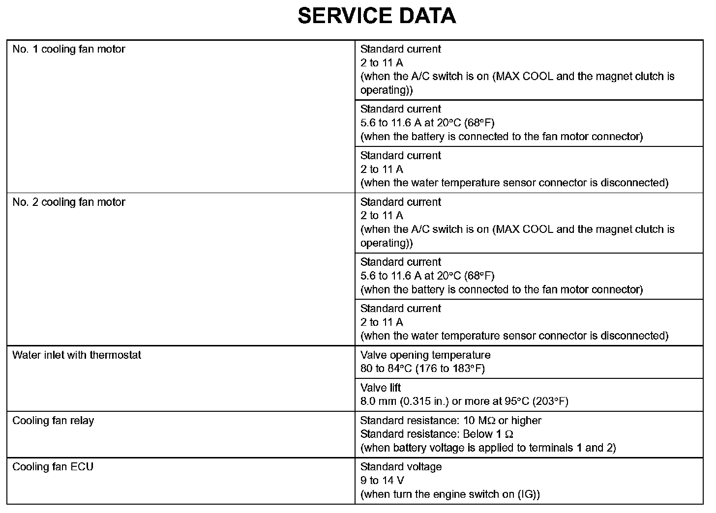 Cooling - Service Data: