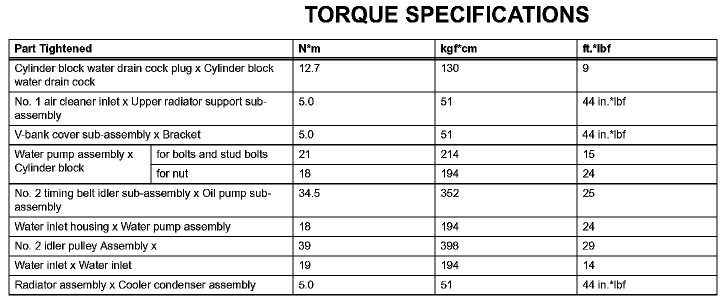 Cooling - Torque Specifications: