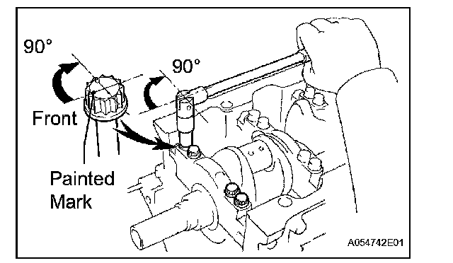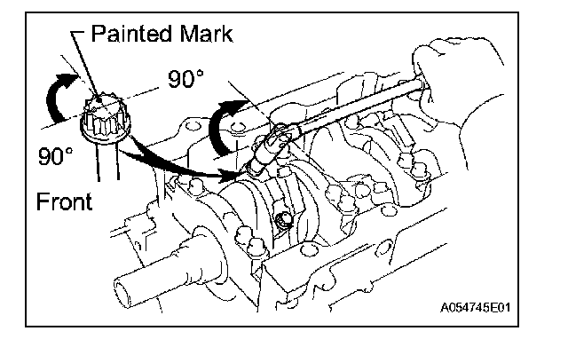 Retighten the crankshaft bearing cap bolts by 90° as shown in the illustration.