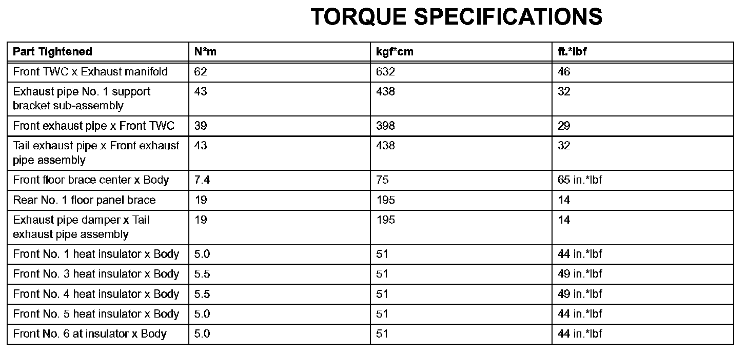 Exhaust - Torque Specifications: