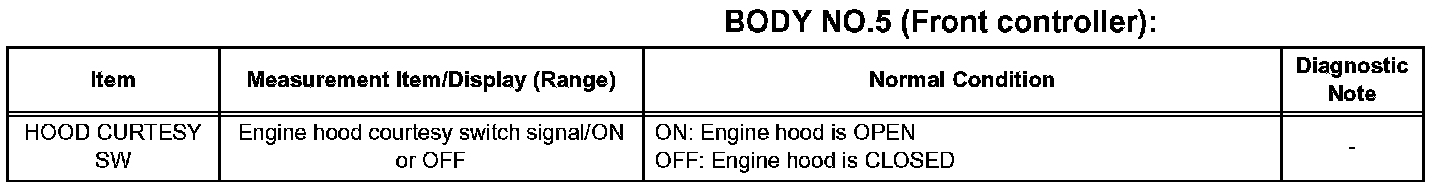 c. Enter the following menus: DIAGNOSIS / OBD/ MOBD / BODY or BODY NO.5 / DATA LIST.